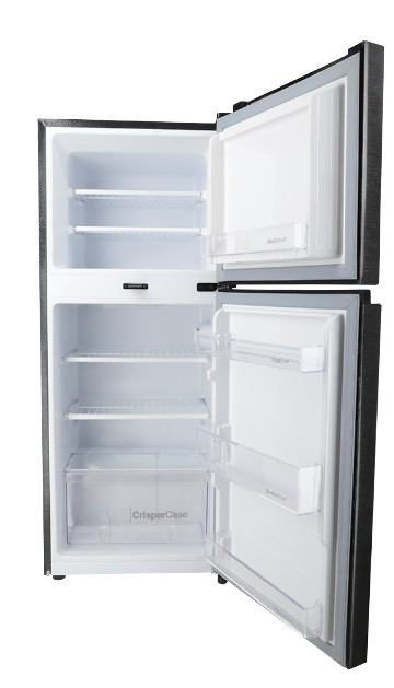 DAWLANCE REFRIGERATOR 9140 WB HAIRLINE BLACK This Non-Inverter, Direct Cool refrigerator comes in black with a hairline black door and top freezer position. It has a black ARC-703 flush plastic handle, assembled external handle, door lock, and control system. Interior: 3 wire shelves, 2 refrigerator door pockets, 2 freezer door pockets, 1 crisper, ceiling LED light, 1 egg tray, and icebox (21 pcs). Energy & Dimensions: 230V, 50–60Hz, Climate Class T, 126.9 cm H × 51 cm W × 50.5 cm D.