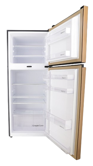DAWLANCE REFRIGERATOR 9140 WB HAIRLINE BLACK Non-Inverter refrigerator with LVS Technology, Hybrid Cooling, and Direct Cool system. Comes in black with hairline black door, top freezer, Asean flush chrome handle, door lock, and control system. Interior: 5 wire shelves, 6 refrigerator door pockets, 2 freezer door pockets, 1 crisper, icebox (12 pcs), 2 egg trays, LED light. Energy & Performance: 230V, 50–60Hz, Energy Class A+, Climate Class T. Dimensions & Weight: Width 60 cm (23.62 in), Depth 60.7 cm (23.90 in), Height 153 cm (60.24 in).